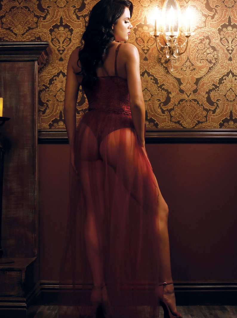 Red Wine Sheer Tulle Long Lingerie Skirt